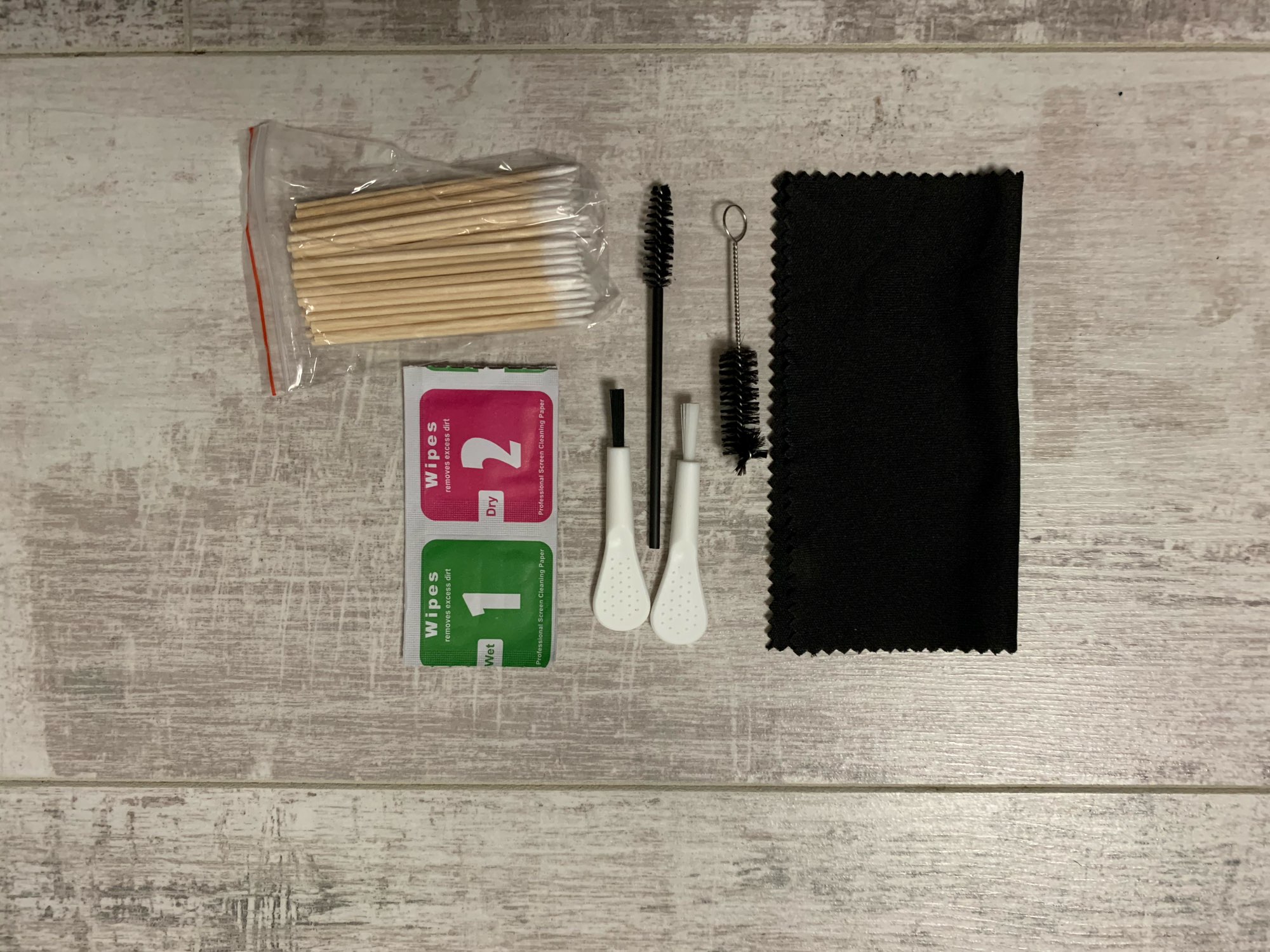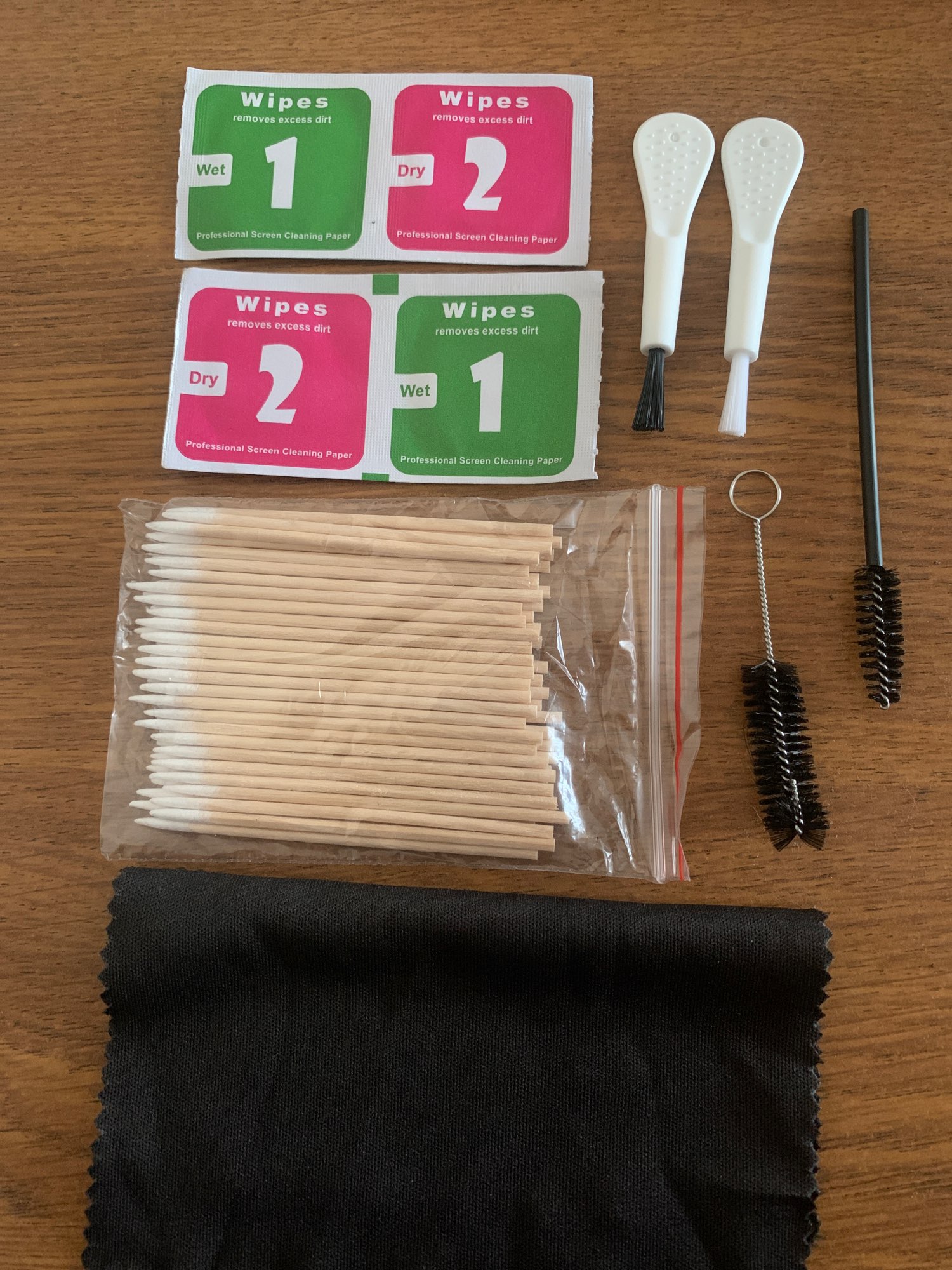 In Mo in three weeks. Funny set. Everything came complete. Rag 13x13 centimeters. The cloth is not microfiber, but quite soft and pleasant to the touch. Brushes are ordinary, but of good quality. For this price a good set, let's see how it will show itself.