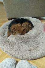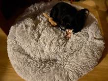 A mí cachorrita le ha encantado,es muy cómoda,ella está muy agusto. La cama es de muy buena calidad,la he pedido de 90 cm porque ella se pondrá más grande. Llegó muy rápida,lo recomiendo.