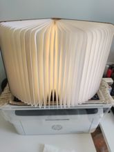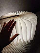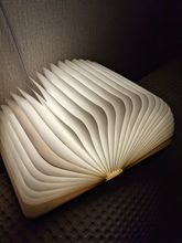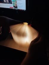 In the Moscow region for a week and a half! In the 5post post in the nearest five, very convenient and fast! Size L is the A5 format, fully opened-very large. Three colors-cold, warm, yellow-are switched by opening/closing. The quality is good, there is a light smell in the plywood cover, apparently from the cutter. It was supposed to be used instead of a lamp when reading in bed, but it's dark. And as a night light-excellent