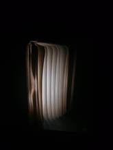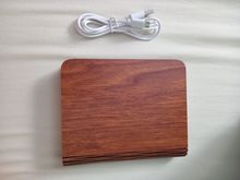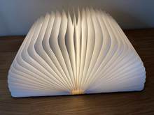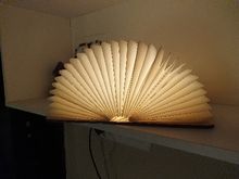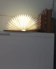 Lighting environment. It has a type open magnet holding the two parts together. When we opened the book in 180 ° it tends to close. Wood cover. Very cute and interesting for a lamp. Great gift. Has charging.